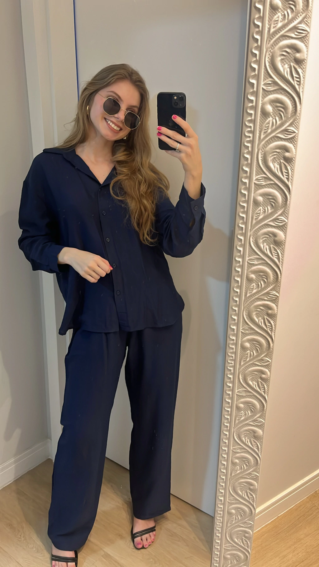 Conjunto composto por uma calça pantalona fluída e uma camisa, garantindo uma sensação de leveza e sofisticação a cada movimento. Ideal para mulheres que buscam estar sempre chiques, sem abrir mão do conforto.