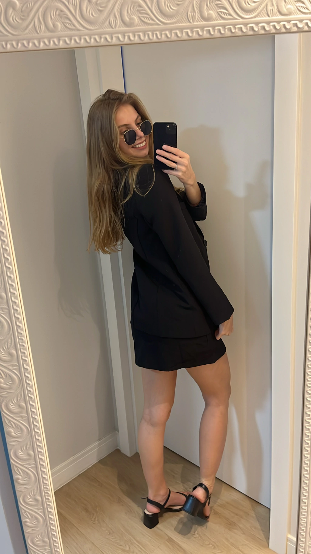 Shorts saia modelo curto (saia na frente e atrás). Possui zíper lateral.