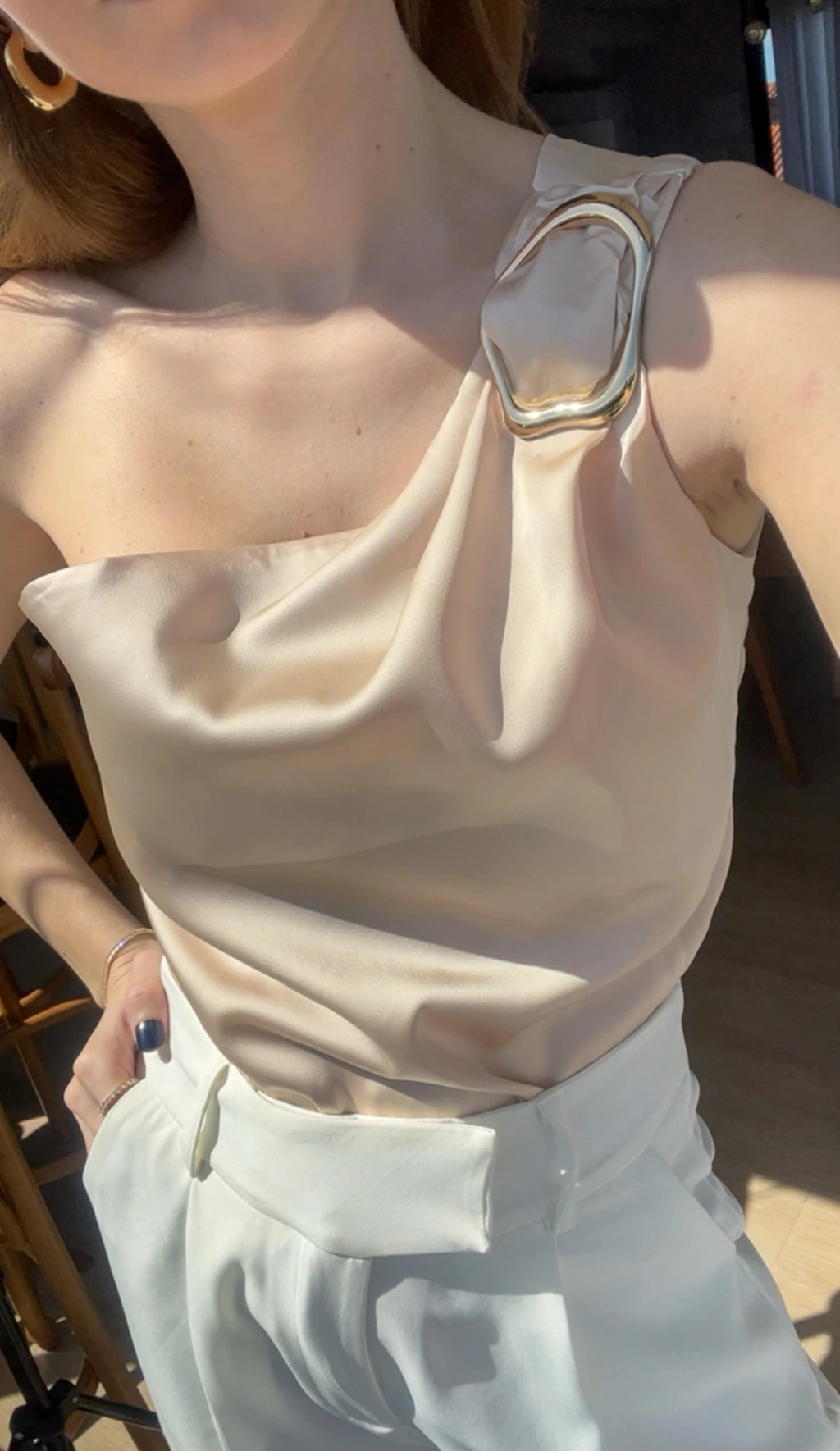 O Body Sofia é a união perfeita entre elegância e versatilidade. Confeccionado em cetim, ele traz um caimento impecável e um brilho sutil que valoriza qualquer produção. Seu recorte de uma alça só confere um visual moderno e refinado, enquanto o detalhe da fivela dourada adiciona um toque de charme e sofisticação.